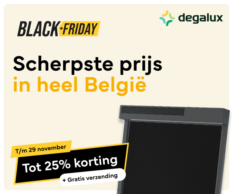 Tijdens Black Friday van Degalux Belgie ontvang je tot wel 25% korting +gratis verzending op jouw nieuwe zonwering. Dit is het beste moment voor zonwering, deze aanbieding zie je niet meer terug.